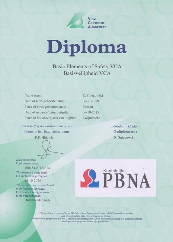 Kwaliteit en betrouwbaarheid zijn de fundamenten van ons werk. Deze diploma’s en certificaten zijn niet alleen een bewijs van onze technische vaardigheden, maar ook van onze toewijding aan veiligheid, specialisatie en de hoogste professionele normen in de branche.
